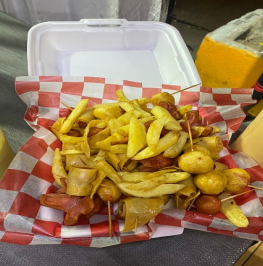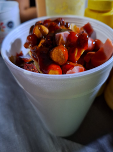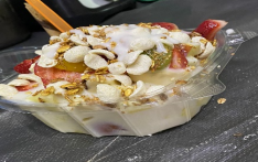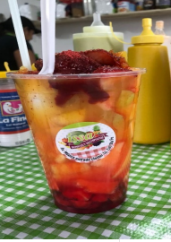 Fruta: fresa, durazno, papaya, melon, platano, manzana elige un yogurt o crema yogurt de fresa, yogurt de durazno, yogurt natural, crema de bionico elige 3 cereales de tu preferencia: Mini kiss, granola, pasas, paletero, amaranto, coco horneado, coco blanco, lunetas, cacahuate, nuez, granillo de colores, arroz inflado