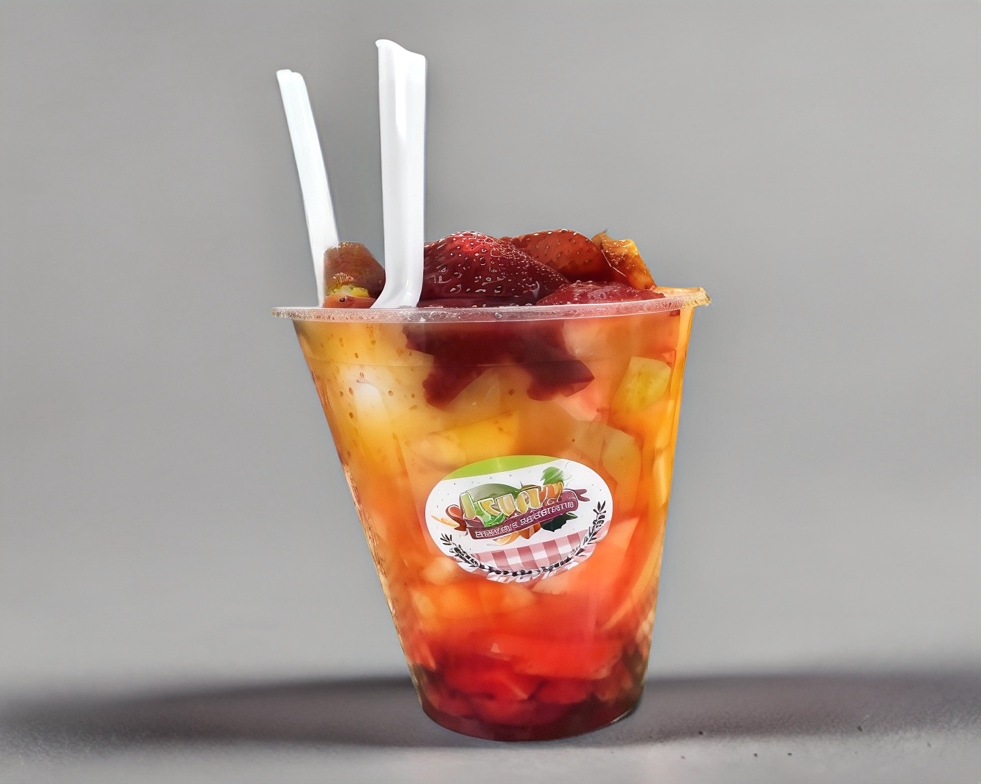Vaso de medio litro. Fruta: fresa, durazno, papaya, melon, manzana