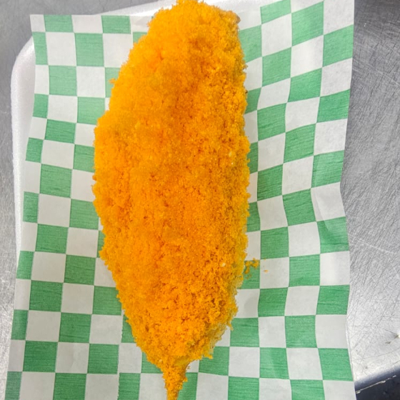 Banderilla de puro queso por dentro, con cheto naranja por fuera.