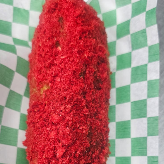Banderilla puro queso por dentro, con flamín hot por fuera.