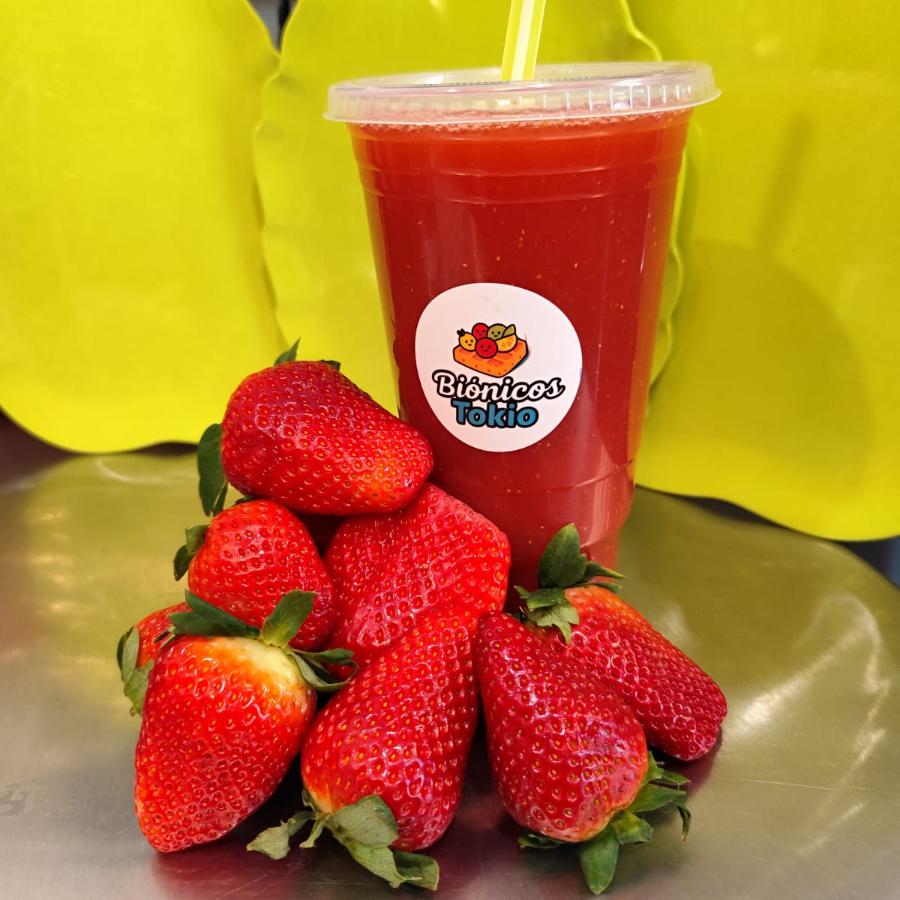 Delicioso biónico cubierto de fresas con crema. Fruta : Melón, Papaya,Fresa,Uva,Plátano,Pera,Manzana, frutos rojos o mango (solo en temporada)