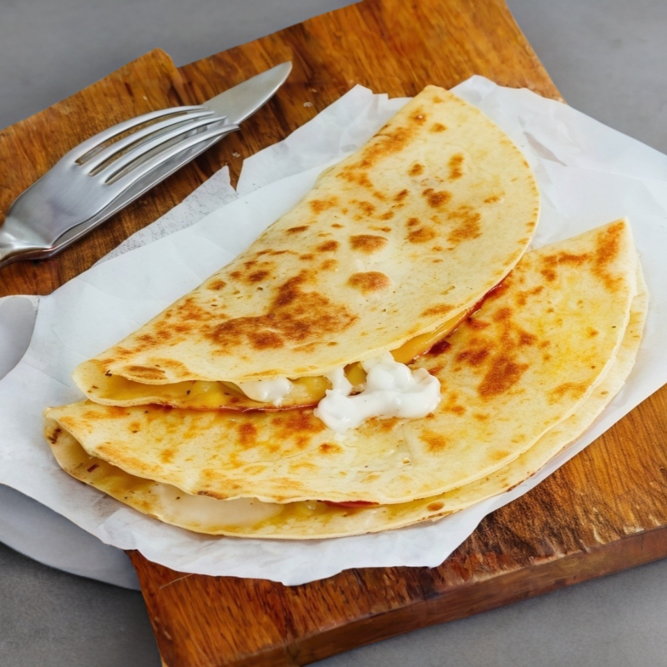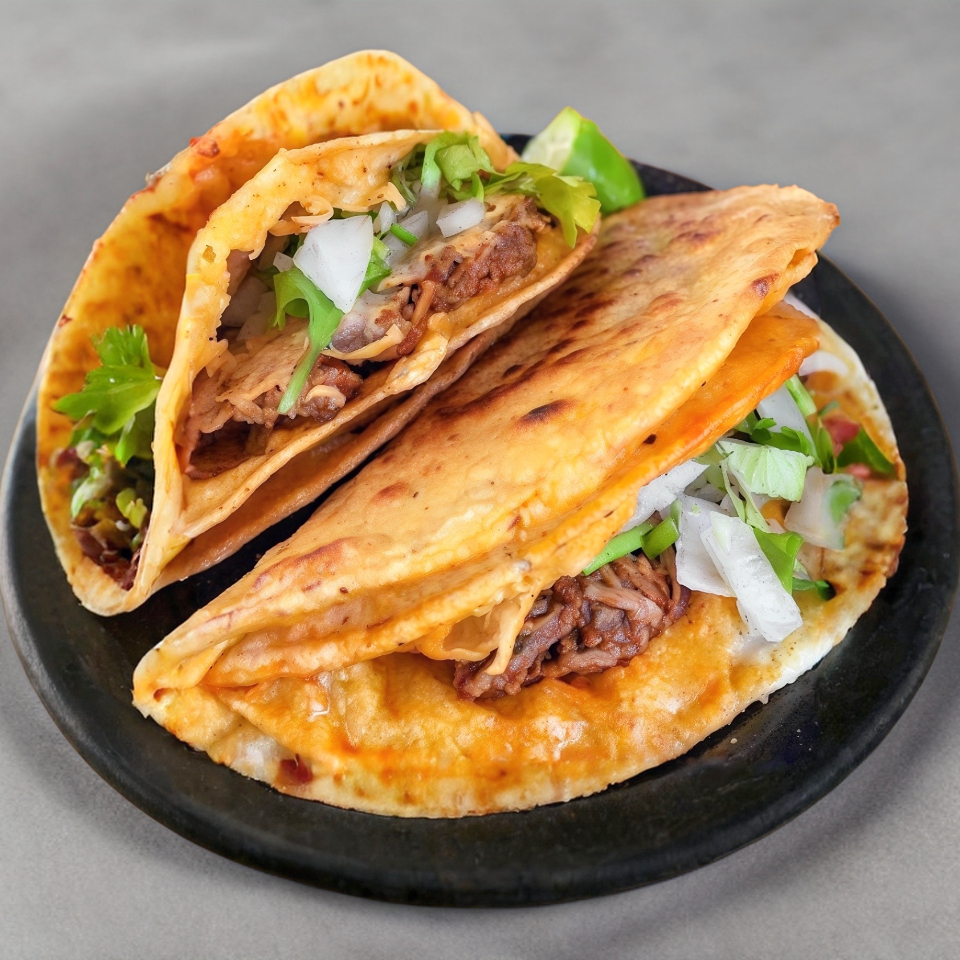 Dos deliciosas tortillas de harina con queso fundido y carne a tu selección.