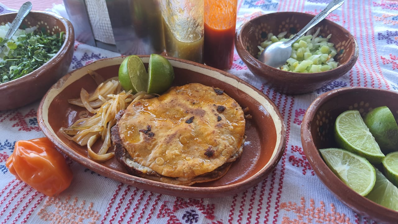 toritlla 30 cm envuelta en queso arroz, frijol, birria tatemada y cebolla guisada