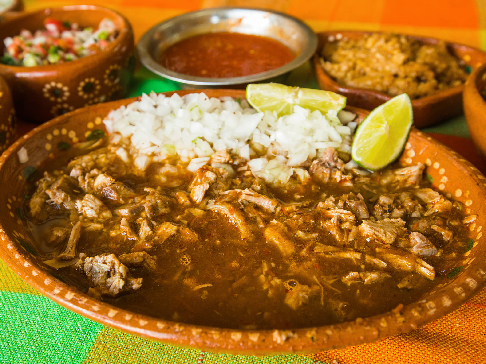 Orden con 160 gr. de carne de birria acompañada con 250ml de consomé, frijoles refritos, cebolla, limón, chile y 5 tortillas de maíz.