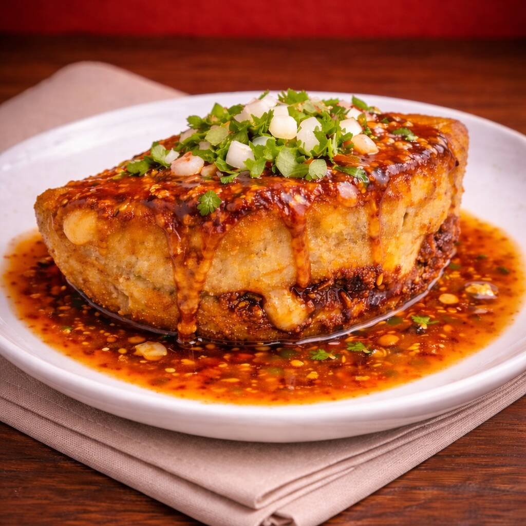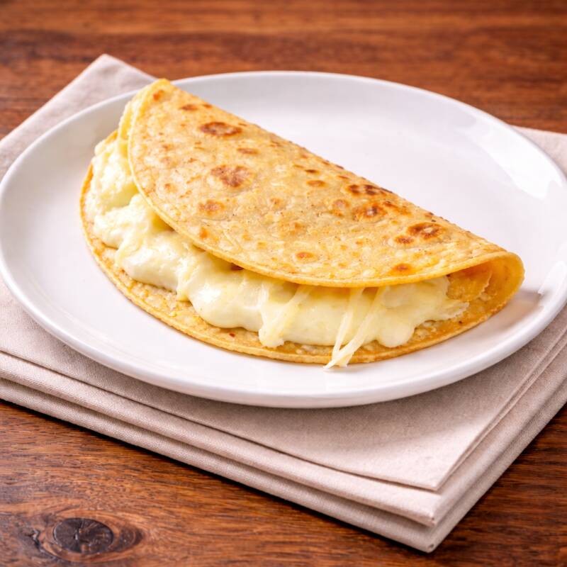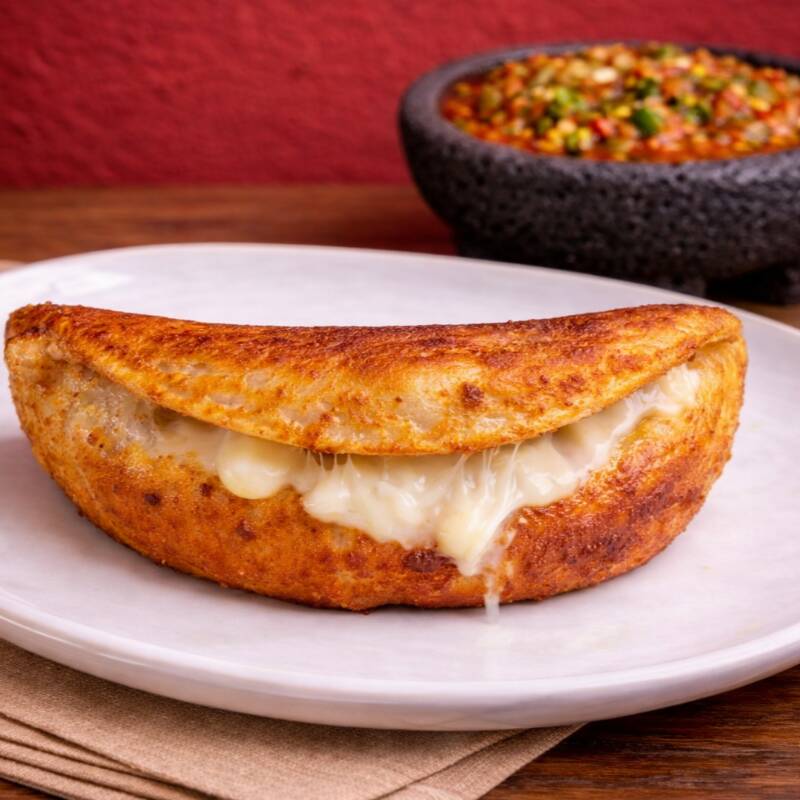 Tortilla de masa frita al punto perfecto, doradita y crujiente por fuera 🤤🔥 Rellena de queso fundido que se derrite en cada mordida, creando ese sabor sencillo pero irresistible 💥 🥢 Crujiente, calientita y bien hecha… 💎 la clásica que siempre se antoja