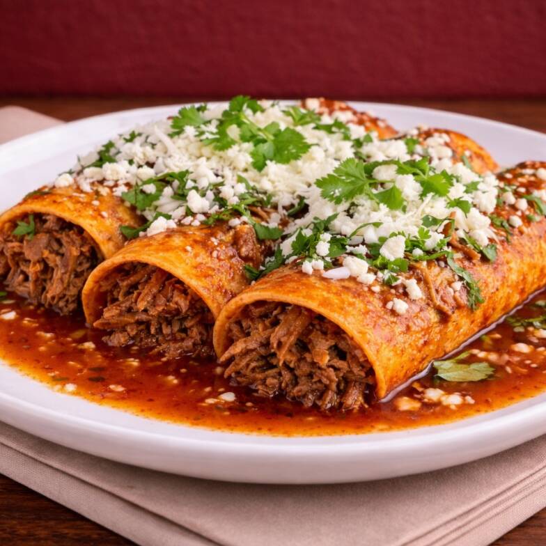Carne de birria cocida lentamente hasta quedar suave, jugosa y llena de sabor, servida en su consomé caliente y concentrado. Acompañada de cebolla, cilantro fresco y tortillas recién calentadas para que prepares cada taco a tu gusto. Reconfortante, casera y absolutamente irresistible.