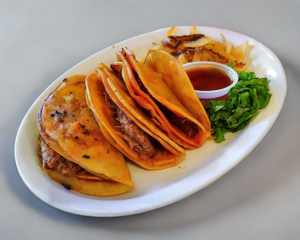 Incluye 3 tortillas hechas a mano, verdura y salsa.