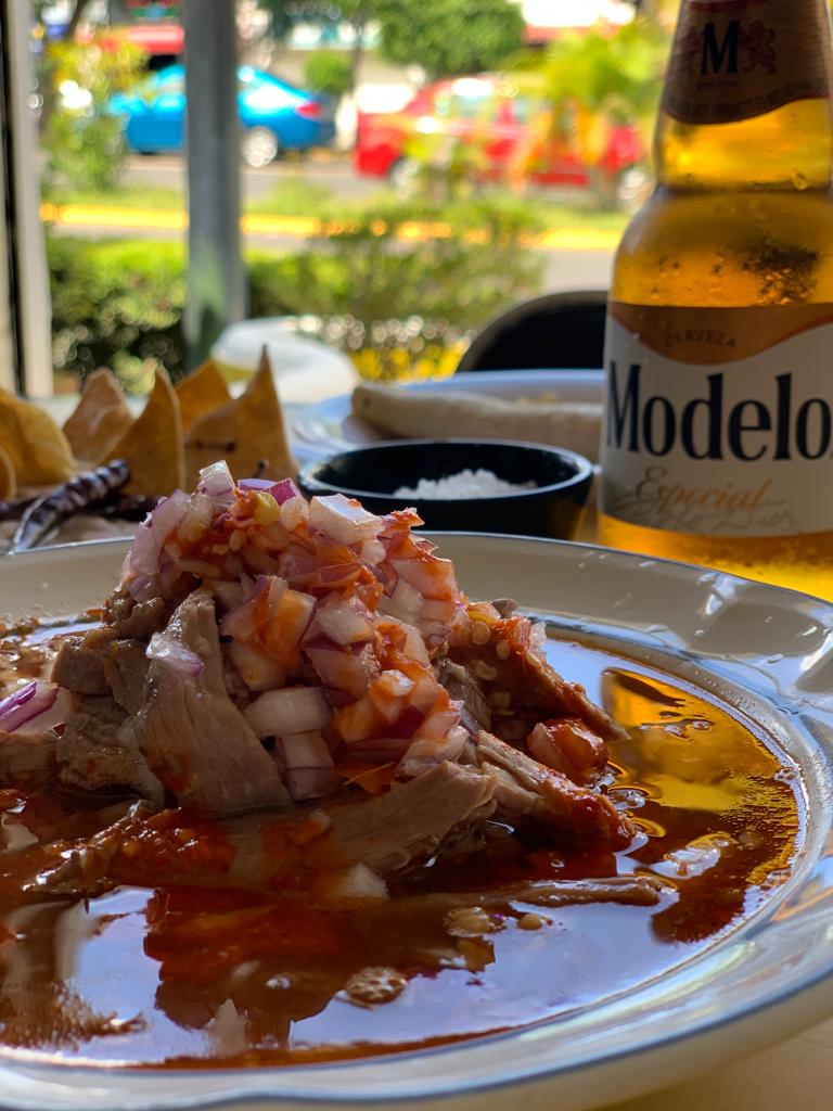 Acompañado de consomé, picante, cebolla y limones