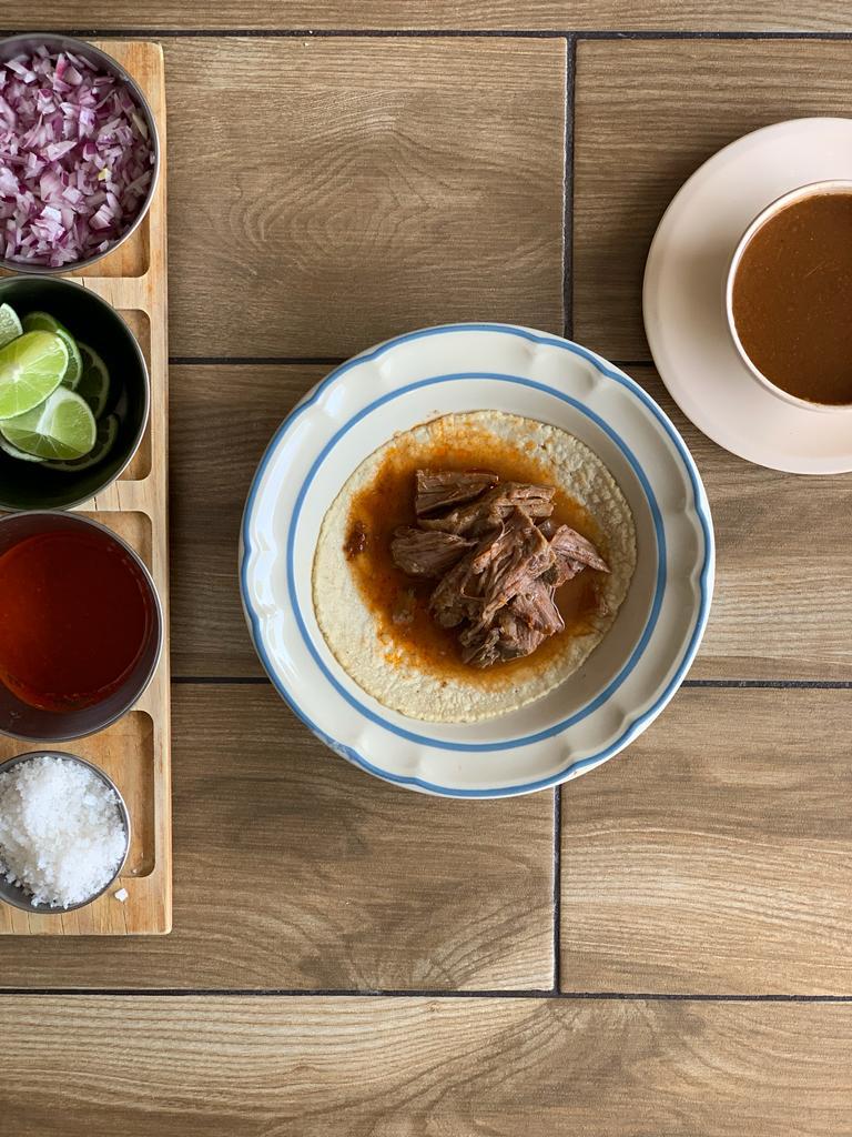 Platillo personal, consomé y tortillas