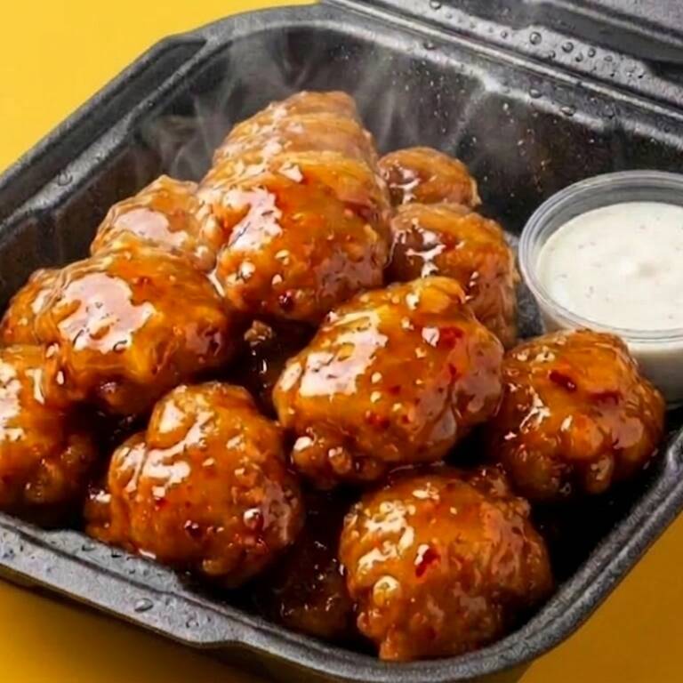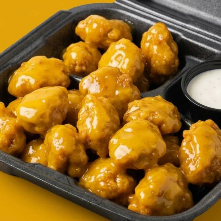 5 jugosos boneless de pollo crujiente bañados en tu salsa favorita. Incluye aderezo ranch.