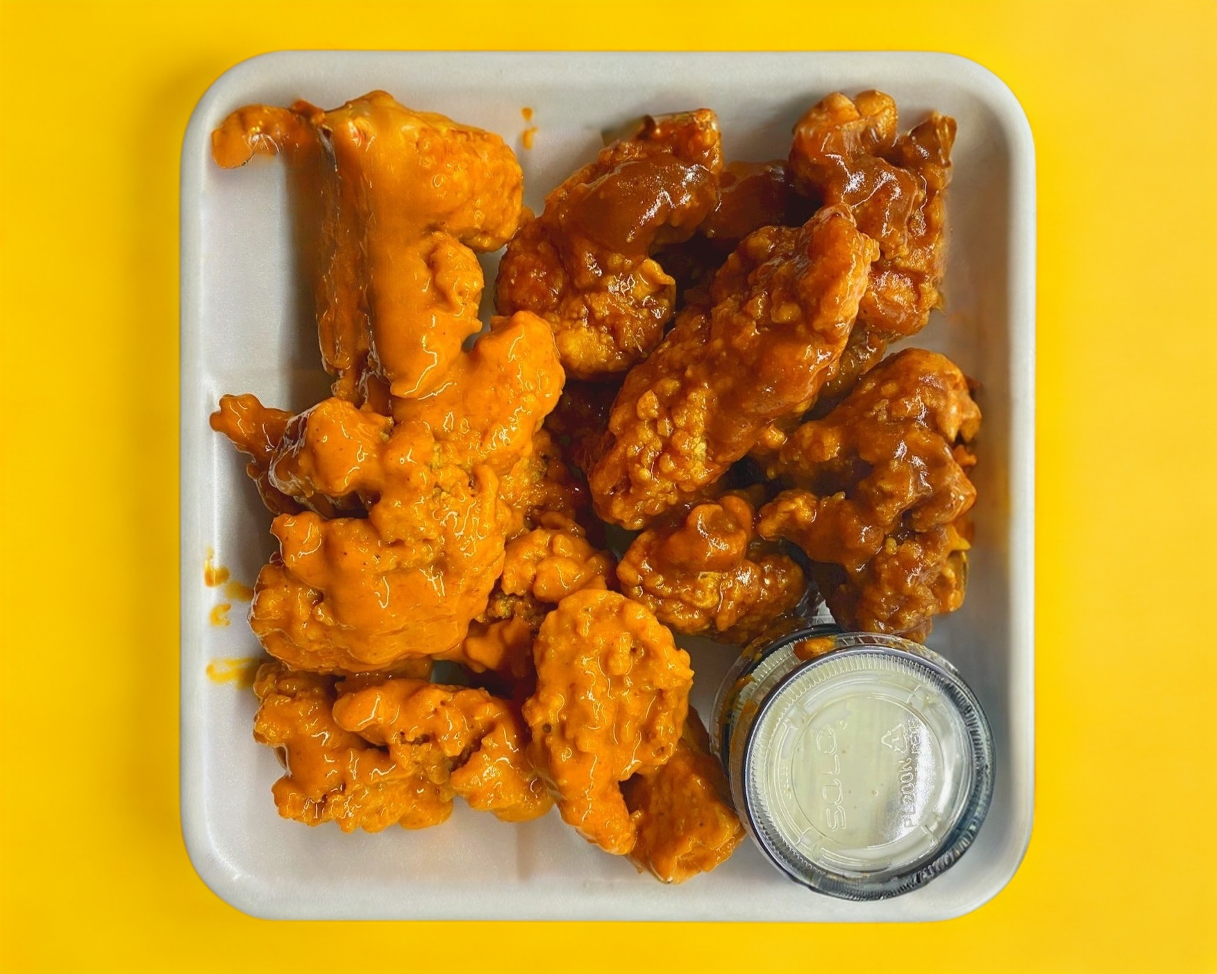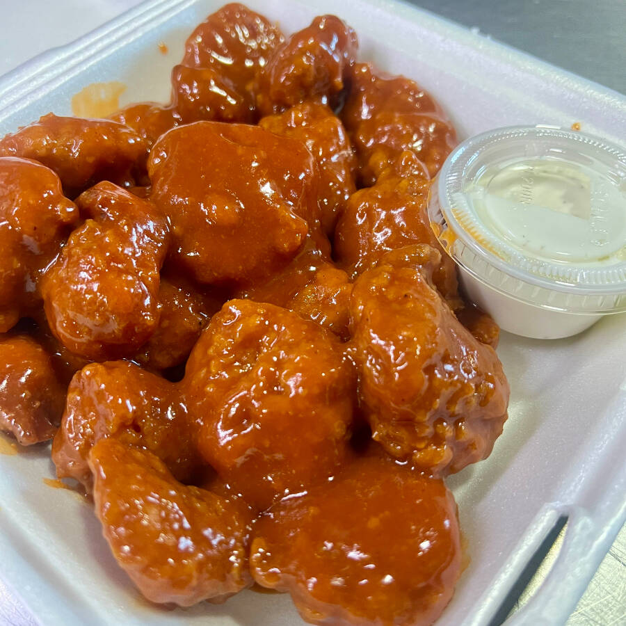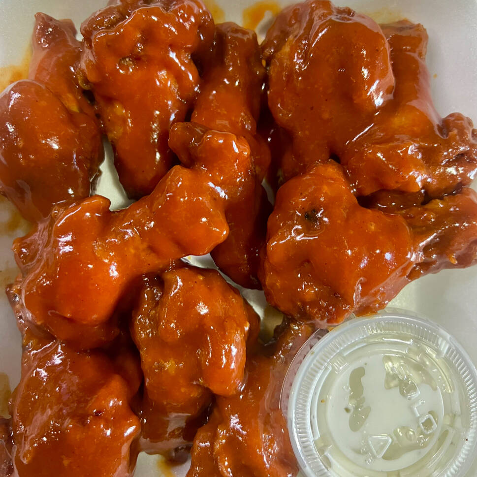 1 Kilo de jugosos boneless, perfectamente empanizados y bañados en tu salsa favorita. Incluye 2 aderezo para complementar cada bocado. (peso en crudo)