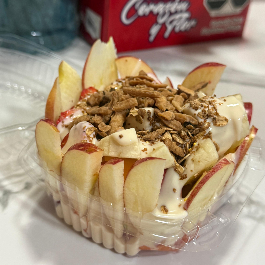 manzana,melon,papaya,platano,fresa,crema y cereales