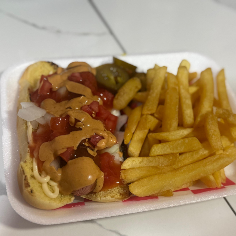 Delicioso hotdog con papas fritas.