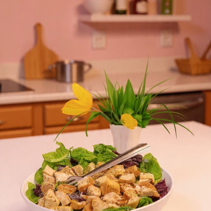 Con pollo a la plancha, queso parmesano, crotones, lechugas mixtas y aderezo.