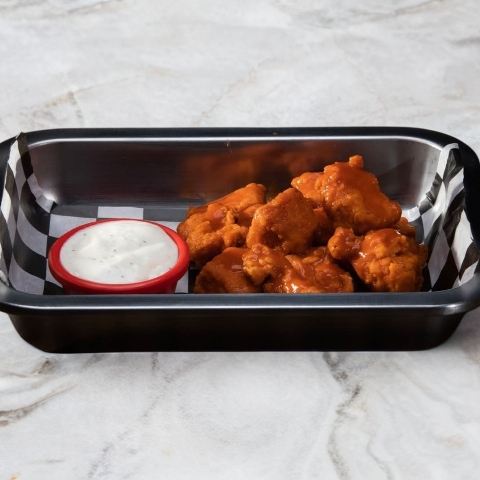 350g de pollo sin hueso, empanizadas y bañadas en salsa a elegir: buffalo, BBQ, ranch, bross o lemon pepper.