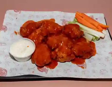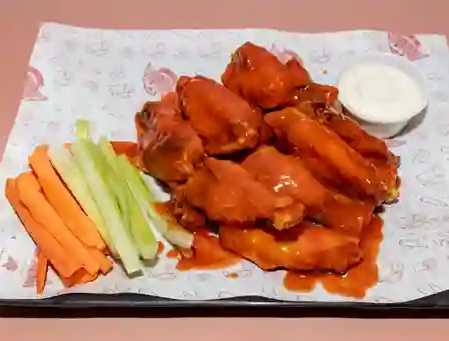 Orden de 6 alitas fritas con salsa a elegir.