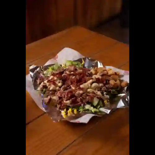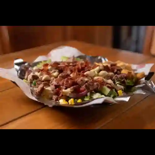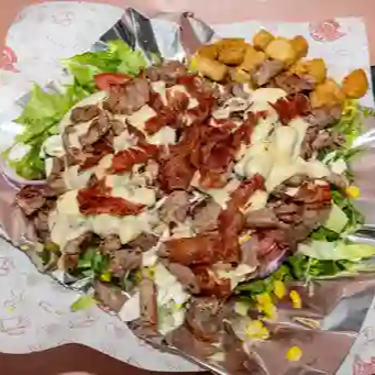 Vegetales frescos, gratinado de queso gouda, arrachera, tocino crujiente y aderezo ranch.