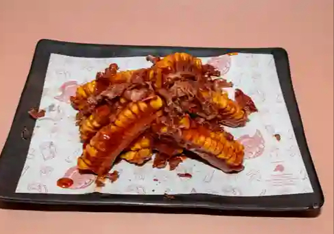 Costillas de elote amarillo con la salsa de tu elección.