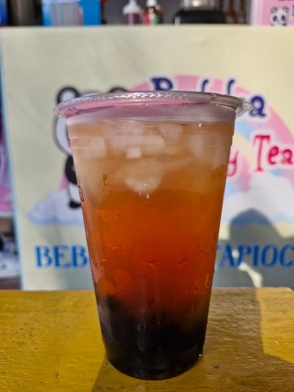 Bebida con cubos de hielos con o sin leche y tapioca negra.