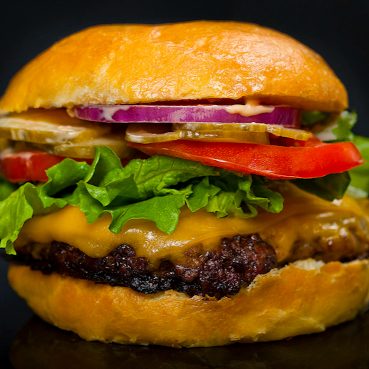 carne burger con queso , pan con mantequilla aderezo especial, sobres de catsup