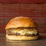 carne burger con salsas bbq y cebolla caramelizada pan con mantequilla, aderezo especial, sobres de catsup