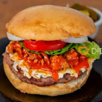carne burger costra de queso peperoni, pan con mantequilla, aderezo especial, sobres de catsup