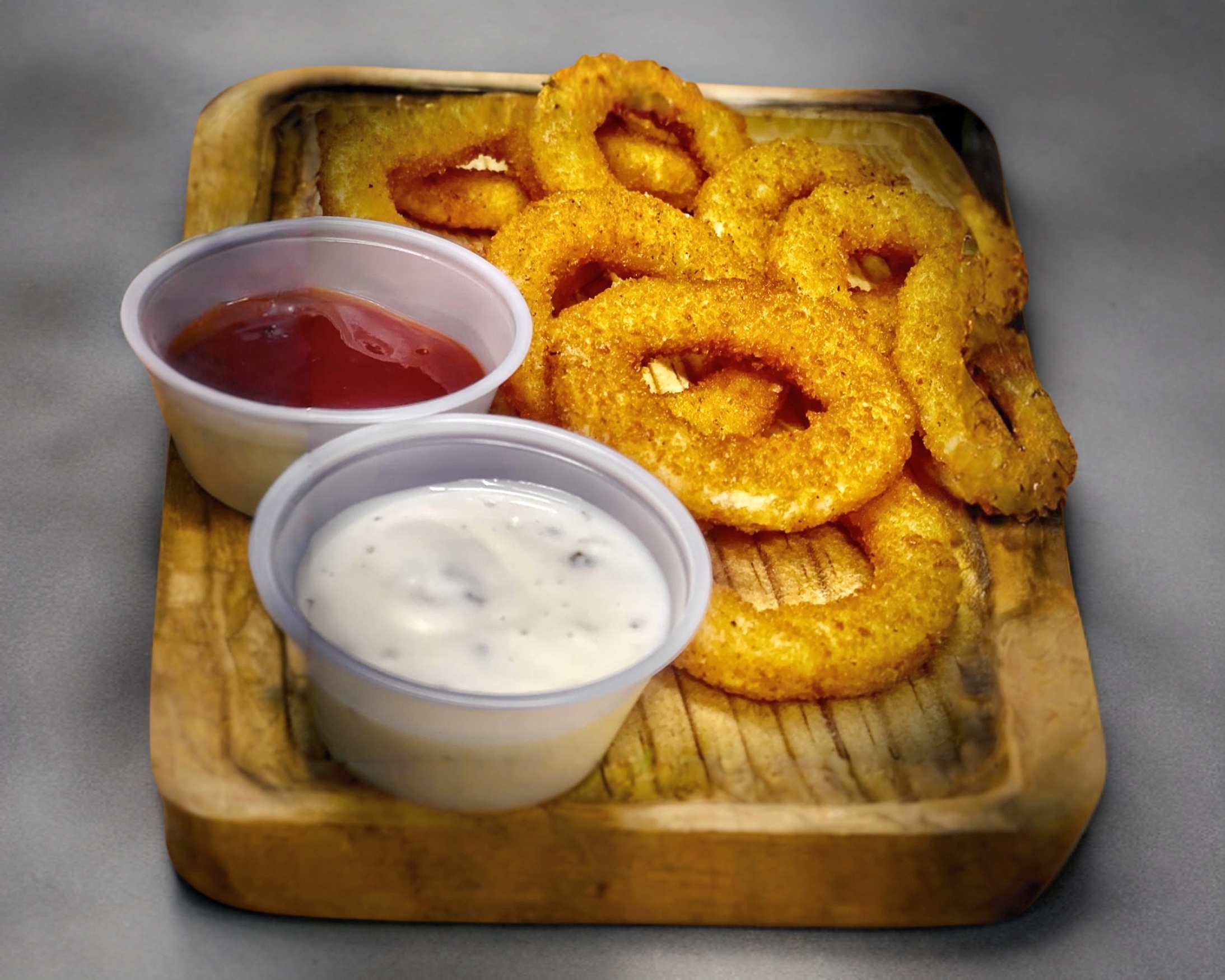 Aros de Cebolla empanizados crujientes +aderezo ranch