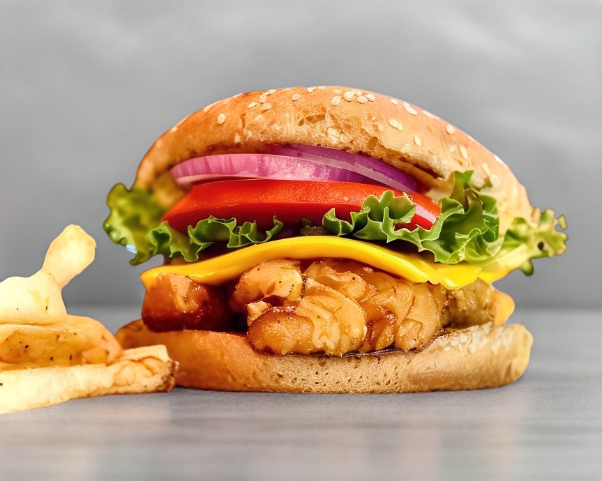 150gs de Pechuga de pollo Empanizada dela mejor calidad, queso manchego,luchuga,jitomate,cebolla +papas ala francesa