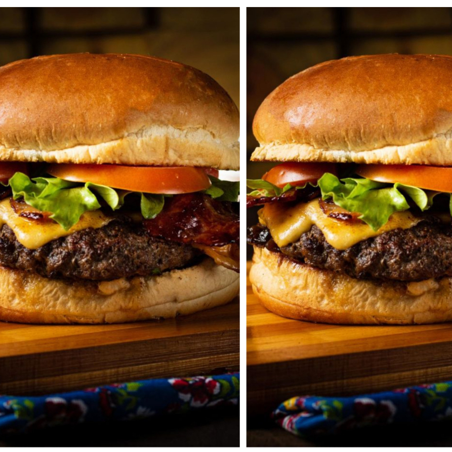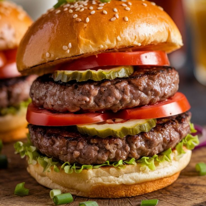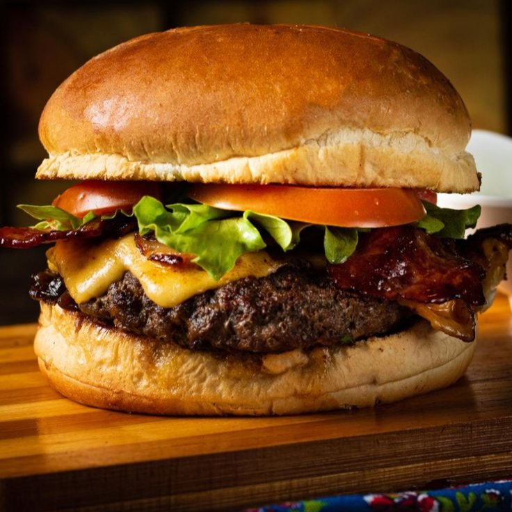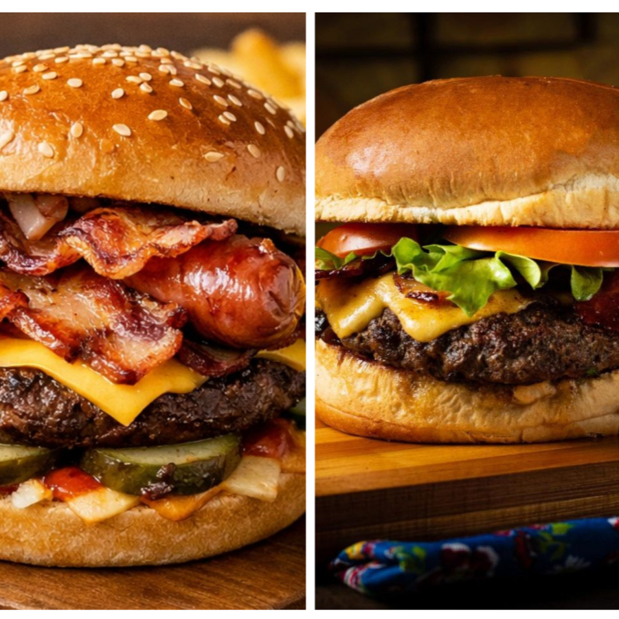 Doble carne de res , pan , tomate , cebolla, queso,lechuga, ketchup mostaza