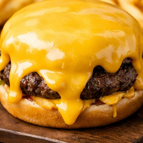 BURGER BAÑADA DE QUESO