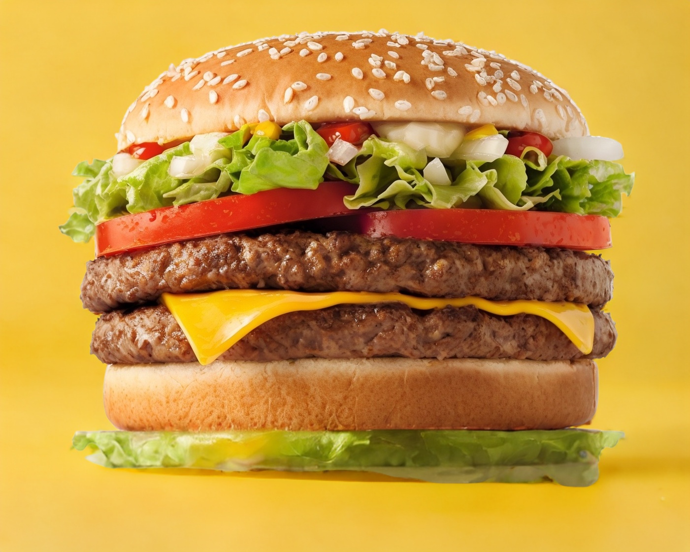 Deliciosa hamburguesa doble jugosa con queso amarillo, lechuga, jitomate, cebolla con un aderezo secreto de la casa.