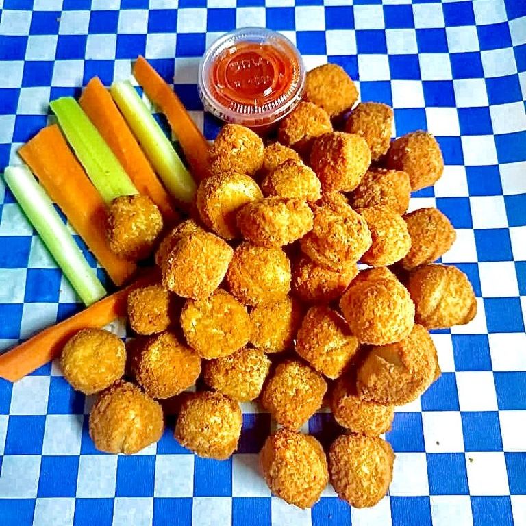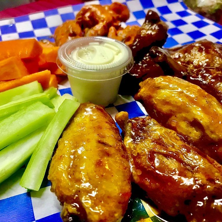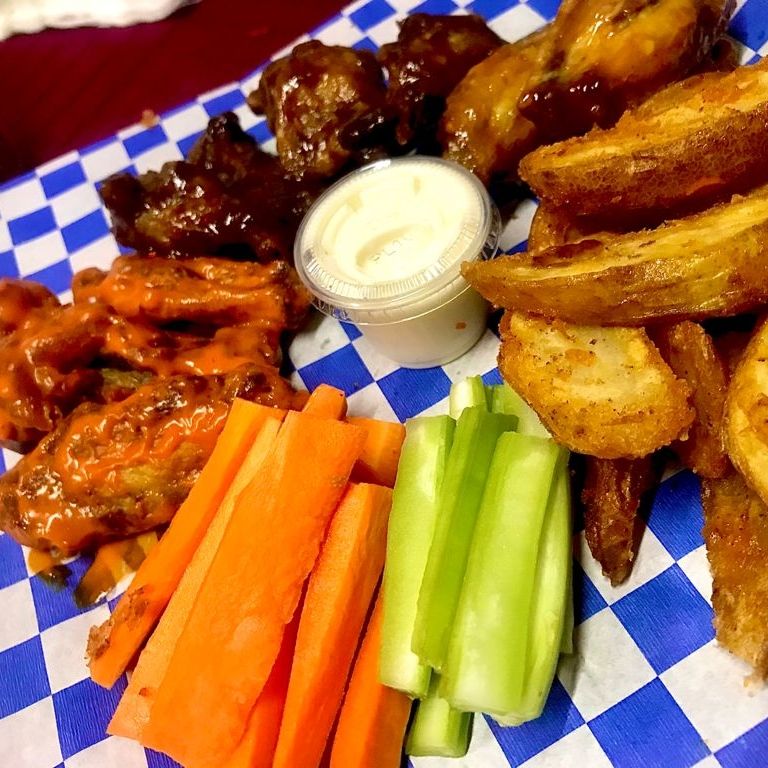 500 gr. de 8 a 10 piezas y 150 gr. de papa a elegir, incluye una porción de apio, zanahoria y ranch.