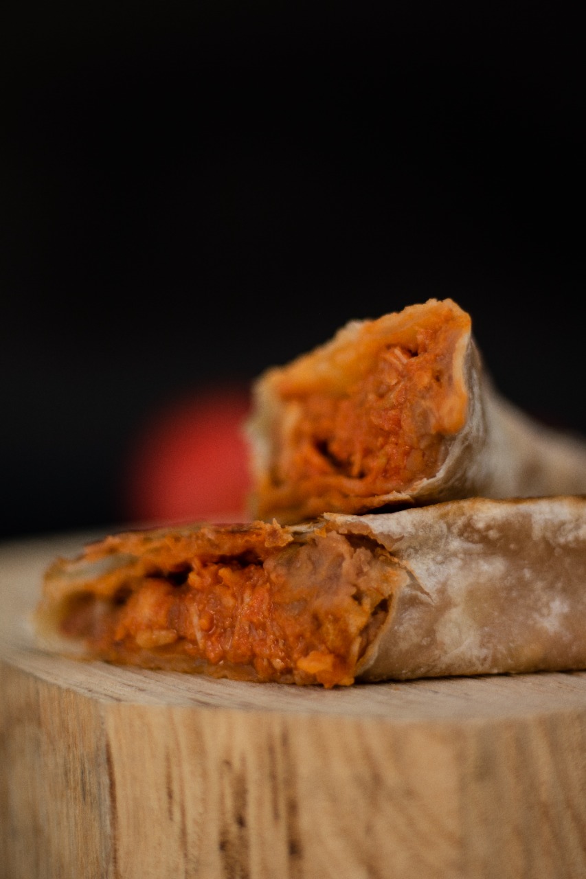 Burro relleno de carne de costilla ahumada a la BBQ.