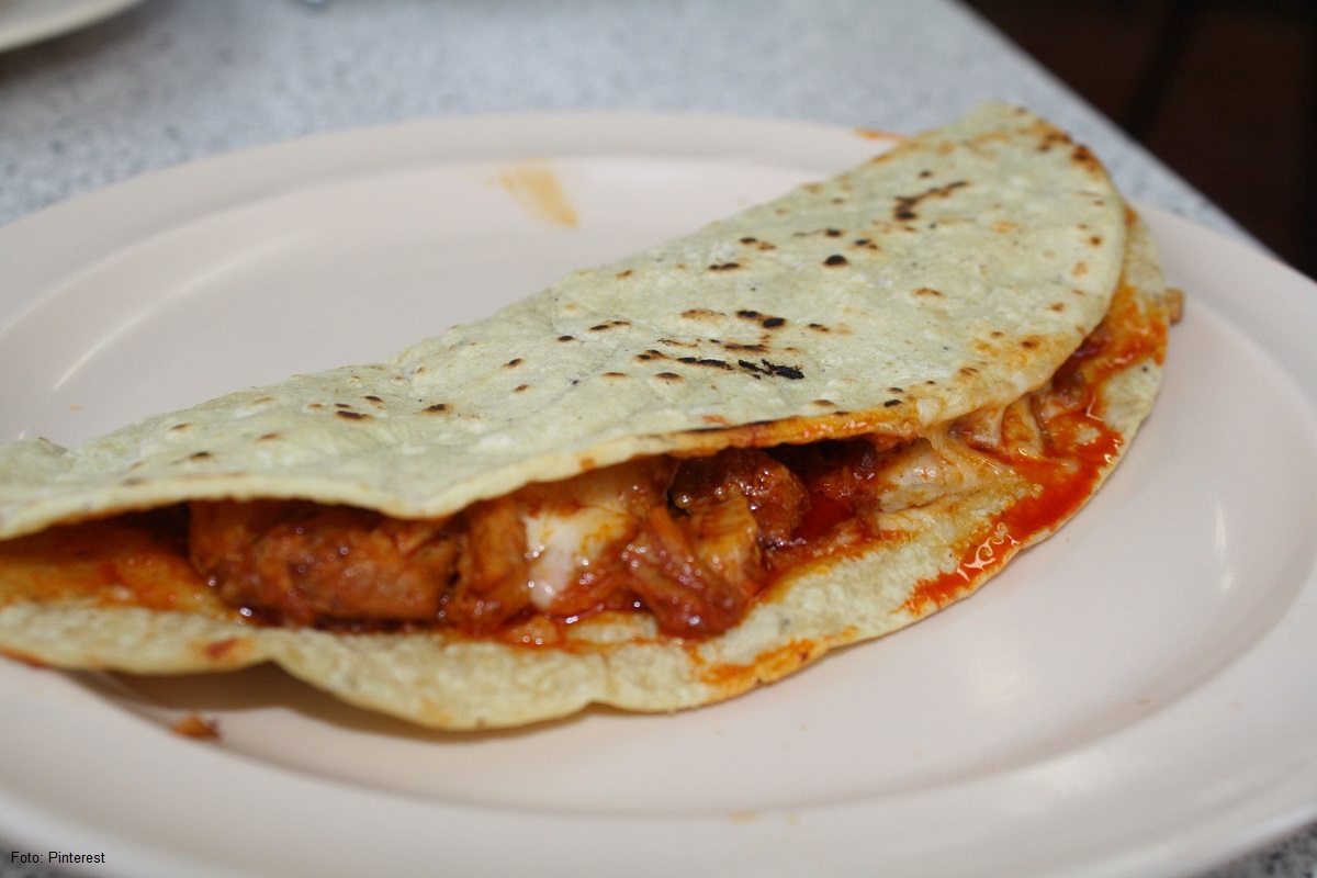 Quesadilla rellena con carne deshebrada.