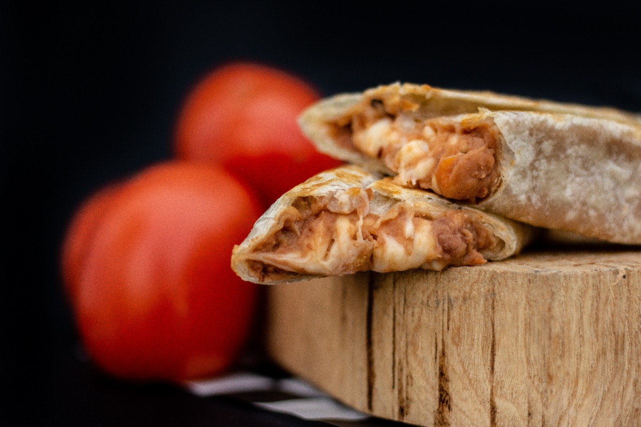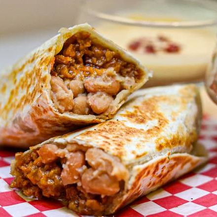 Burro relleno de frijoles refritos con queso.