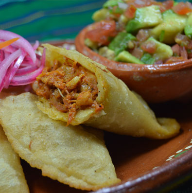 Quesadilla rellena con tradicional cochinita pibil.