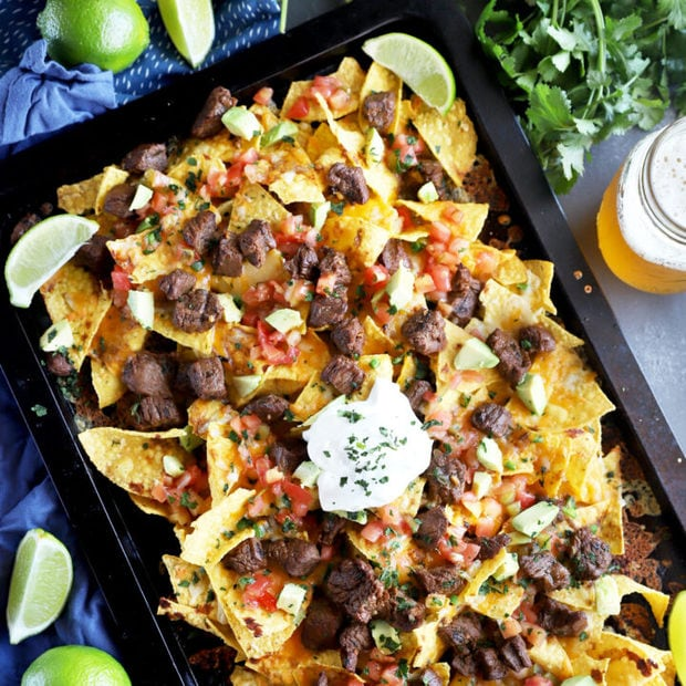 Totopos de maíz carne elegida y queso fundido incluye salsa y verdura aparte.