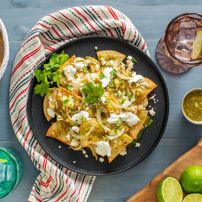 tradicionales chilaquiles verdes con quesito, frijolitos, cebolla y salsa picante aparte
