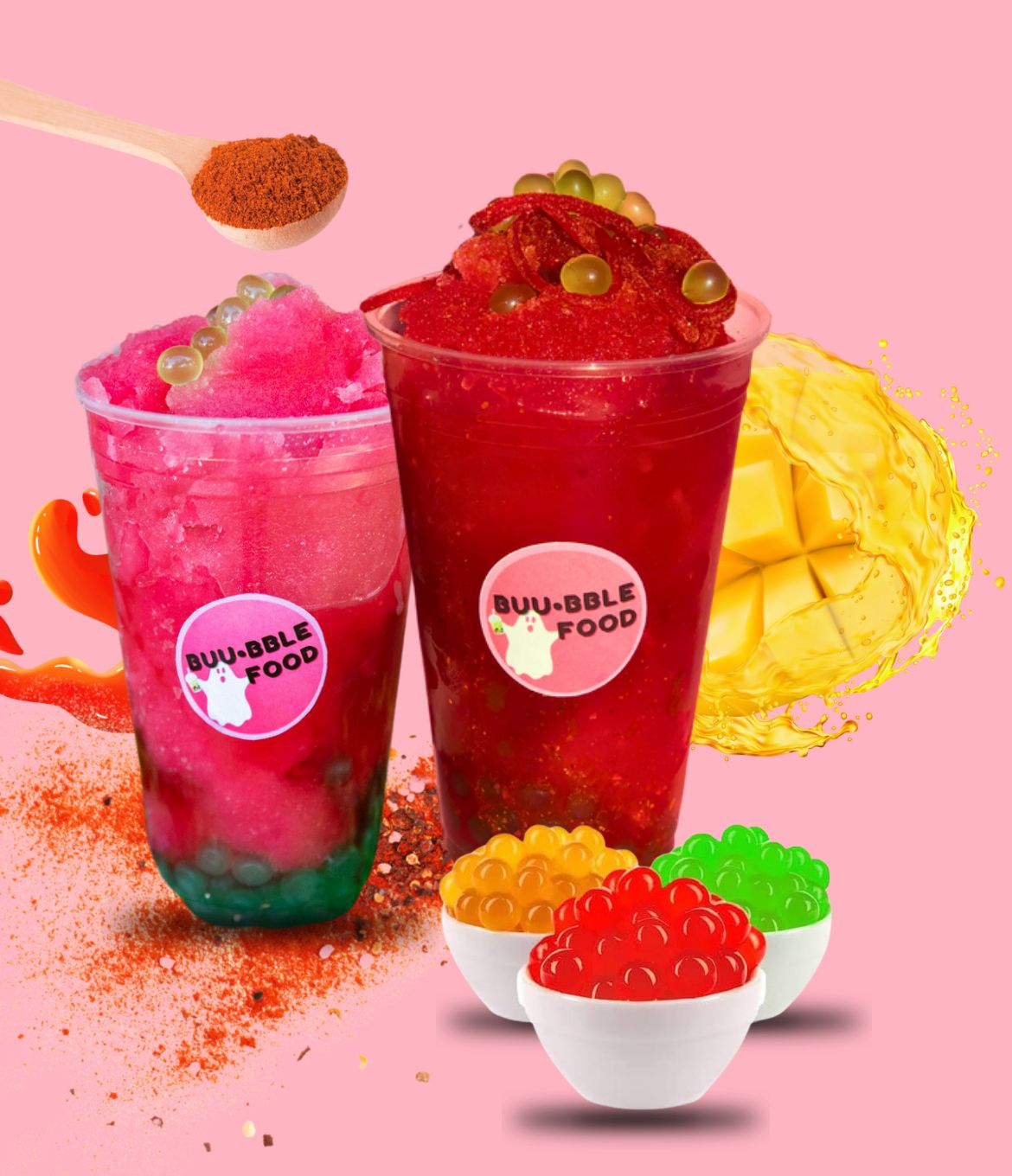 Bubble Iced con chamoy y tajin con porcion de perlas explosivas.