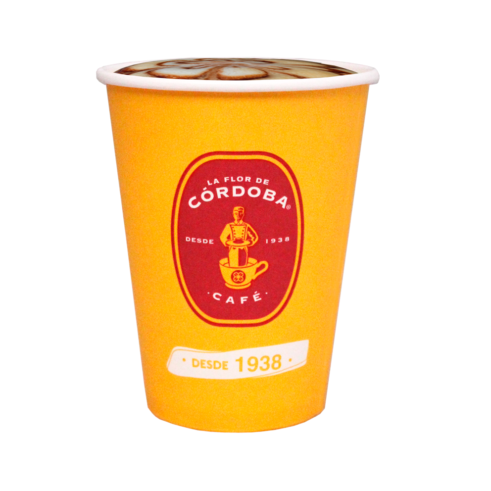 Bebida caliente con shot de café espresso, con leche vaporizada y tonos acaramelados.