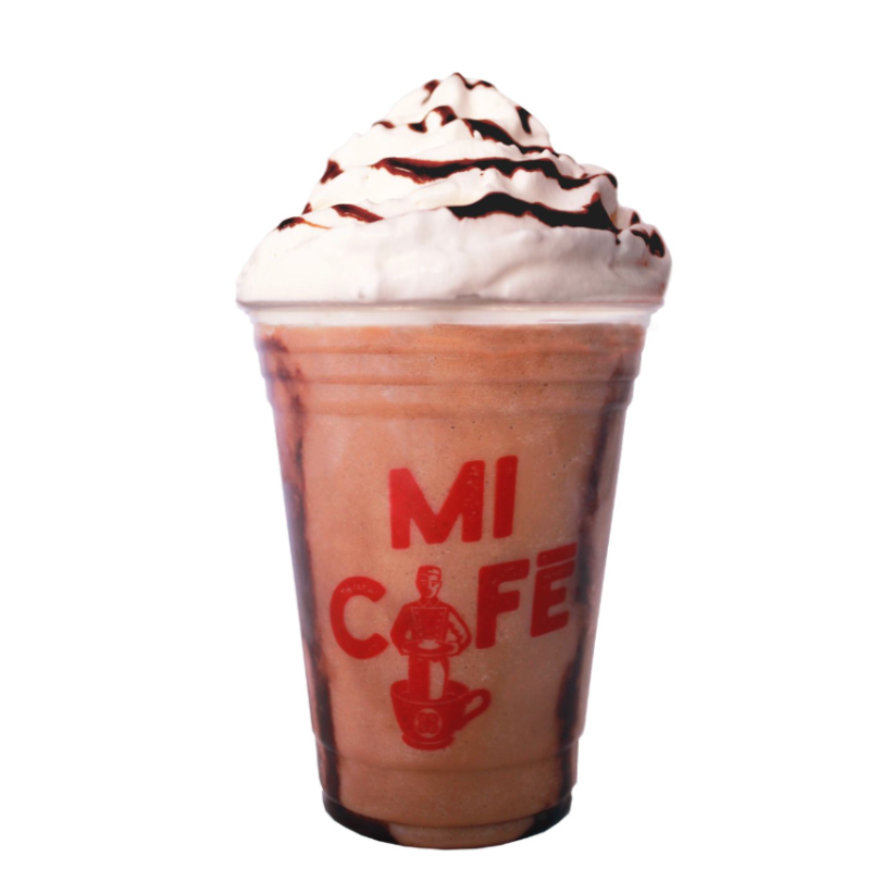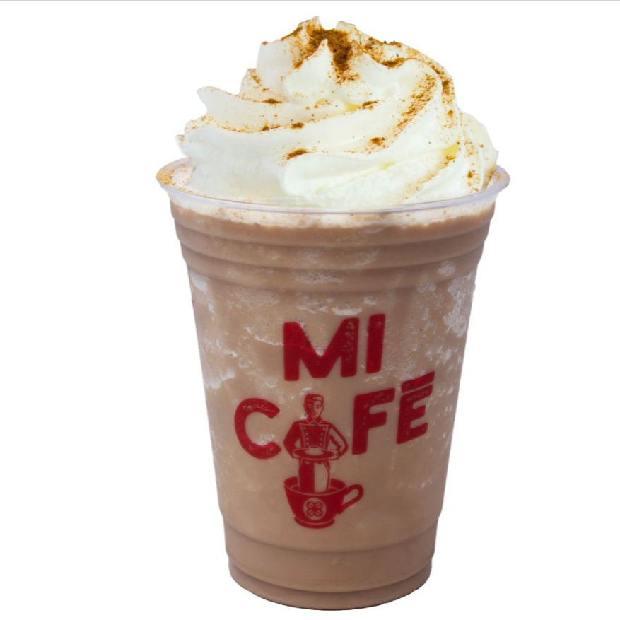 Frappé clásico de café, toque ligero a chocolate, con crema batida y un toque de canela.