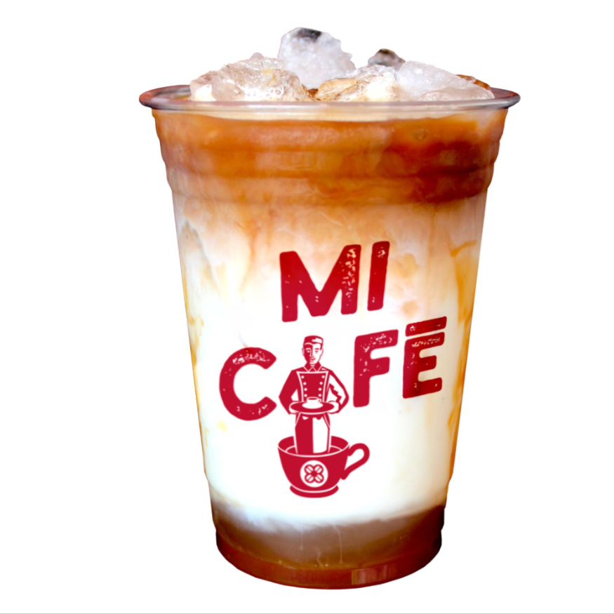 Bebida a las rocas con shot de café espresso, con leche vaporizada y tonos acaramelados.