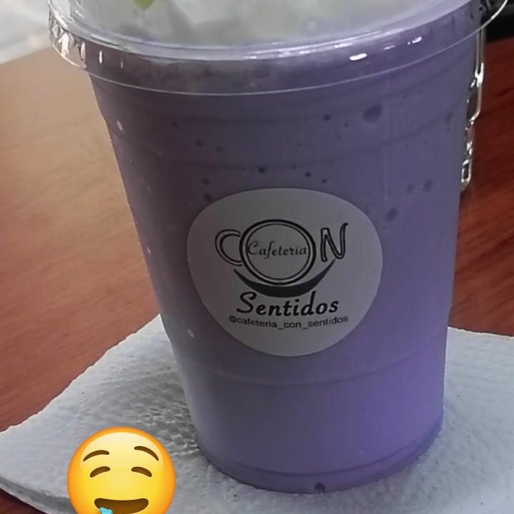 Deliciosa bebida en las rocas sabor taro con leche deslactosada