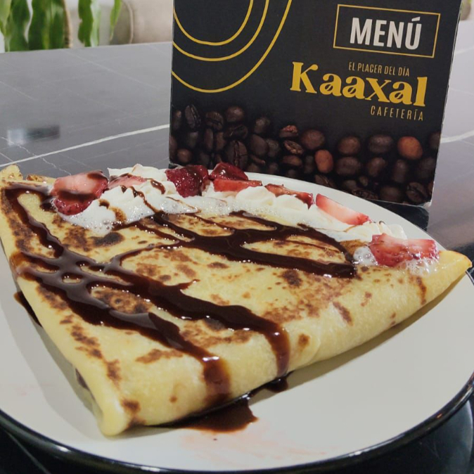 Waffle con nutella decorada con galletas oreo, fresa, plátano y 1 bola de helado en el centro