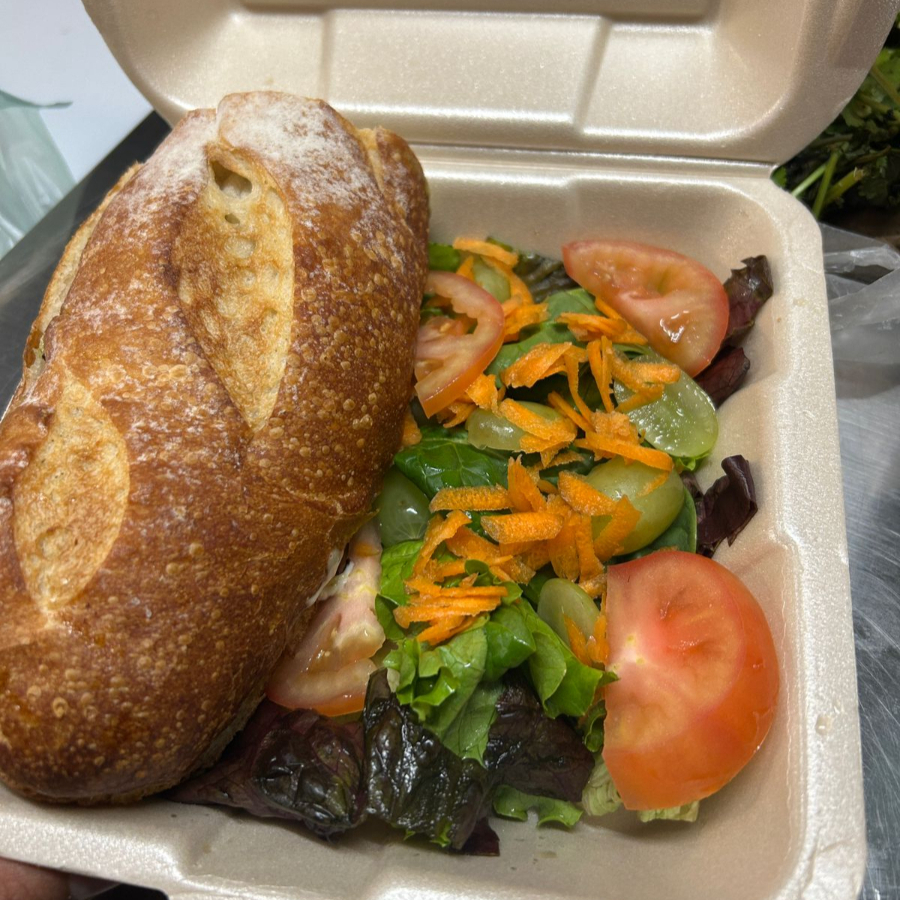 Pan de masa madre y proteína a elegir, gratinado con queso manchego. Acompañamiento de ensalada o papa dorada a elegir.
