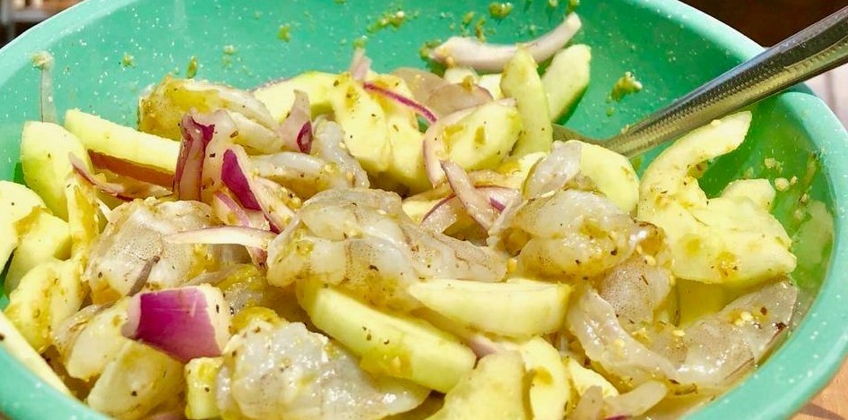 Delicioso y tradicional ceviche de camarón en trozo.
