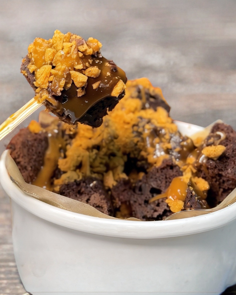 Mini brownies fudge en vaso (180 g, aproximadamente 18 brownies mini). No incluye toppings.