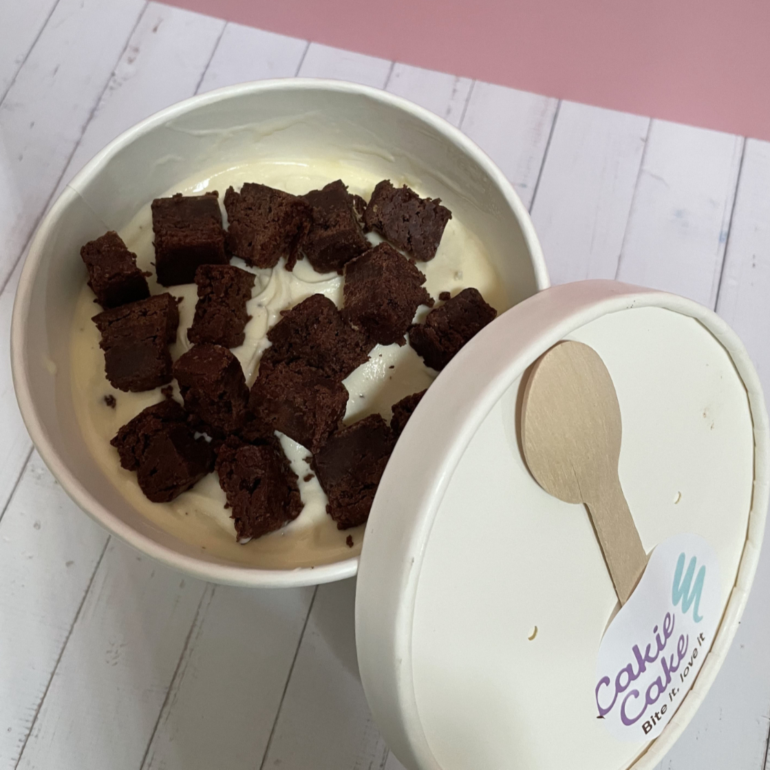 Porque a todos nos gusta el brownie con helado, tenemos este helado cremoso de vainilla con trozos de brownie fudge.