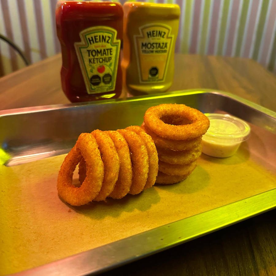 Aros de cebolla con aderezo ranch 10 pz.