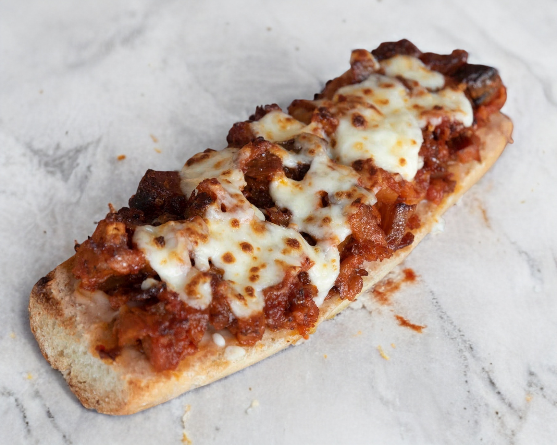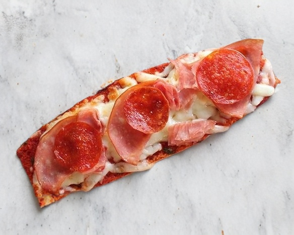 Salsa pizza, queso gratinado y carnes frias / Presentación de una pieza